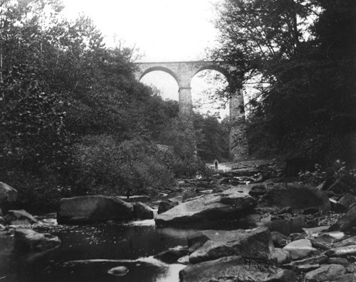 2 2/22/2007: A patron has written of this shot: "I believe I can help indentify 2 photos from the Mystery Photo Collection: I believe I can help indentify 2 photos from the Mystery Photo Collection: scrpbk44.jpg looks like it could be the Furnace Run Aqueduct in Everett, south of Peninsula .... " [Thank you for this information!] |